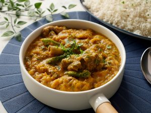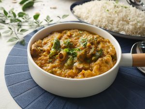 Add fresh coriander & serve with rice.