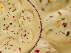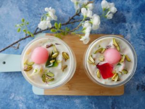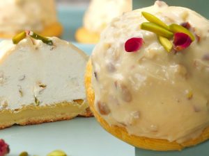 Garnish it with edible silver leaf, tutti frutti & pistachios, serve!