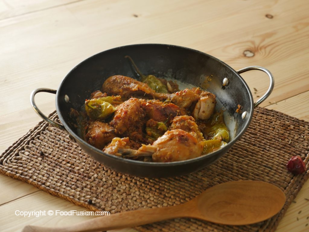 Hari mirchon ko knife ki madad sa slit karein aur karhai mein dal ker 5 minutes kliya fry ker lein.