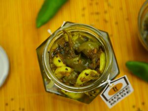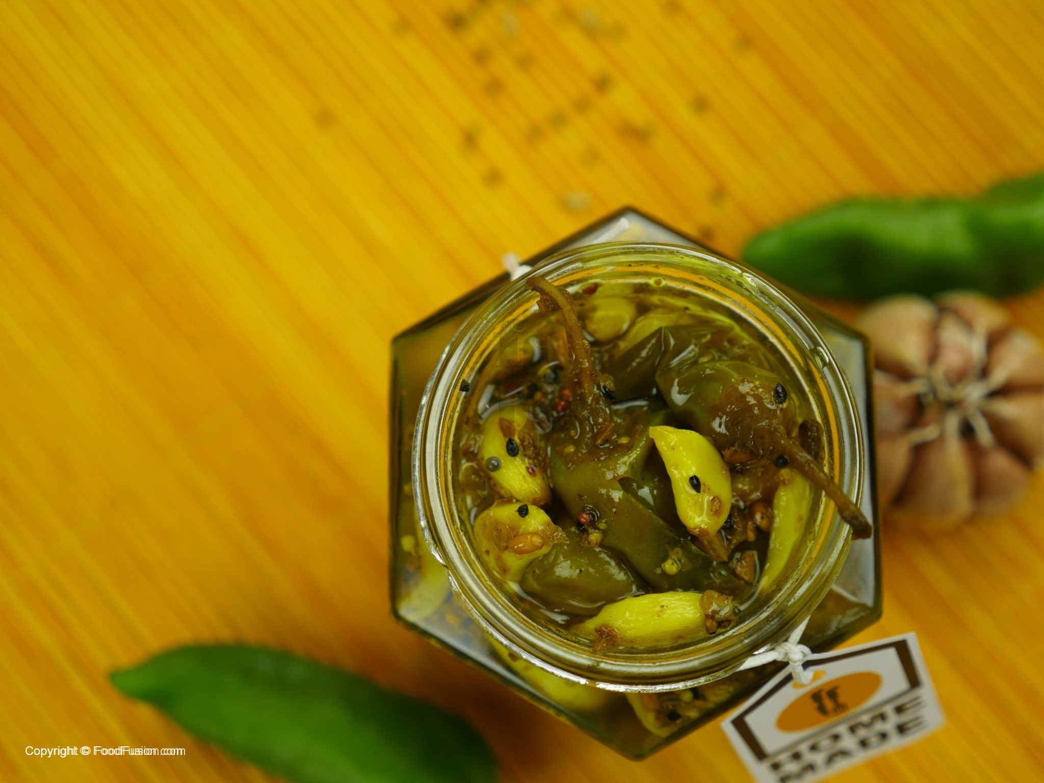 Home made instant green Chili and Garlic pickle recipe that you will want to always keep handy. #HappyCookingToYou