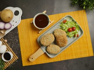 Japanese croquettes ko Tonkatsu sauce ka saath serve karein.