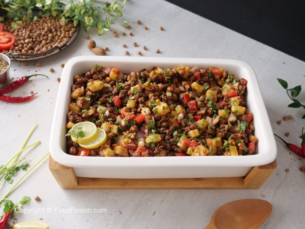 -Boiled aloo,pyaz,tamatar,hara dhania,lemon juice aur hari mirch dal ker ache tarhan mix ker lein.
