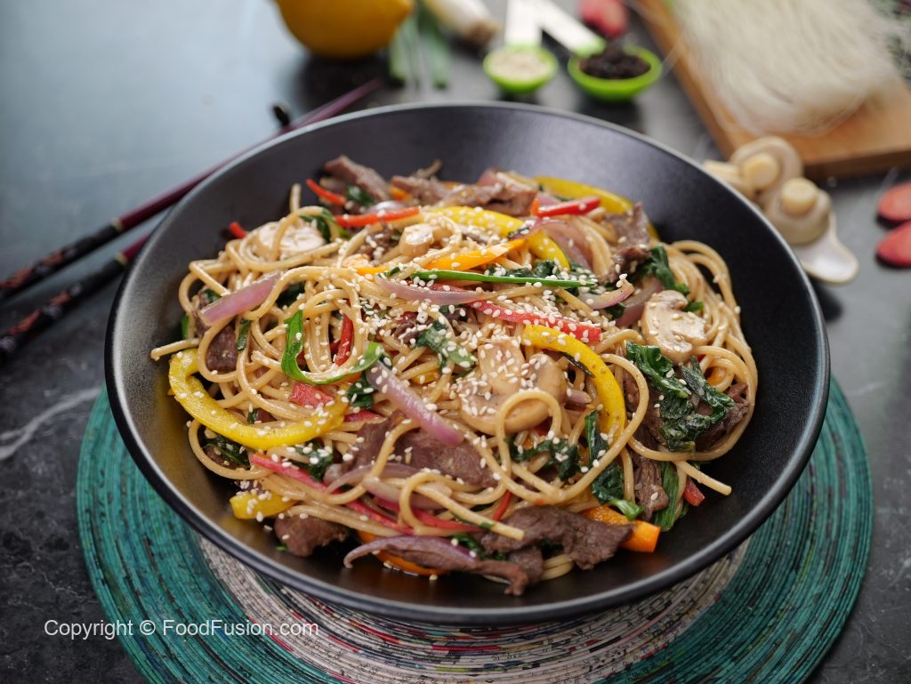 Add beef strips,wilted spinach & mix well.