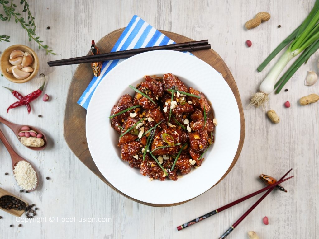 -In a wok,heat cooking oil & fry chicken until light golden,take out chicken pieces & let it rest for a minute & fry again until crispy & set aside.