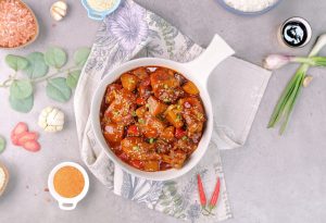 Sprinkle sesame seeds,spring onion leaves & serve with boiled rice!