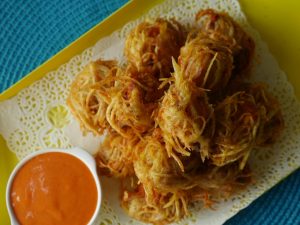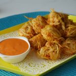 Sprinkle chaat masala & serve with dip.