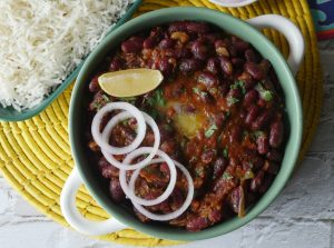 In a pot,add red kidney beans,water,salt & mix well & bring it to boil and remove scum,cover & cook on medium flame until tender (approx. 45-50 minutes) then cook on high flame approx. ½ cup water is left & set aside.