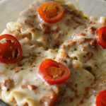 Red sauce with mince dal ker pheela lein,cheddar cheese,mozzarella cheese,dried oregano aur lal mirch crushed dal ker red jalapenos pepper rakh dein.
