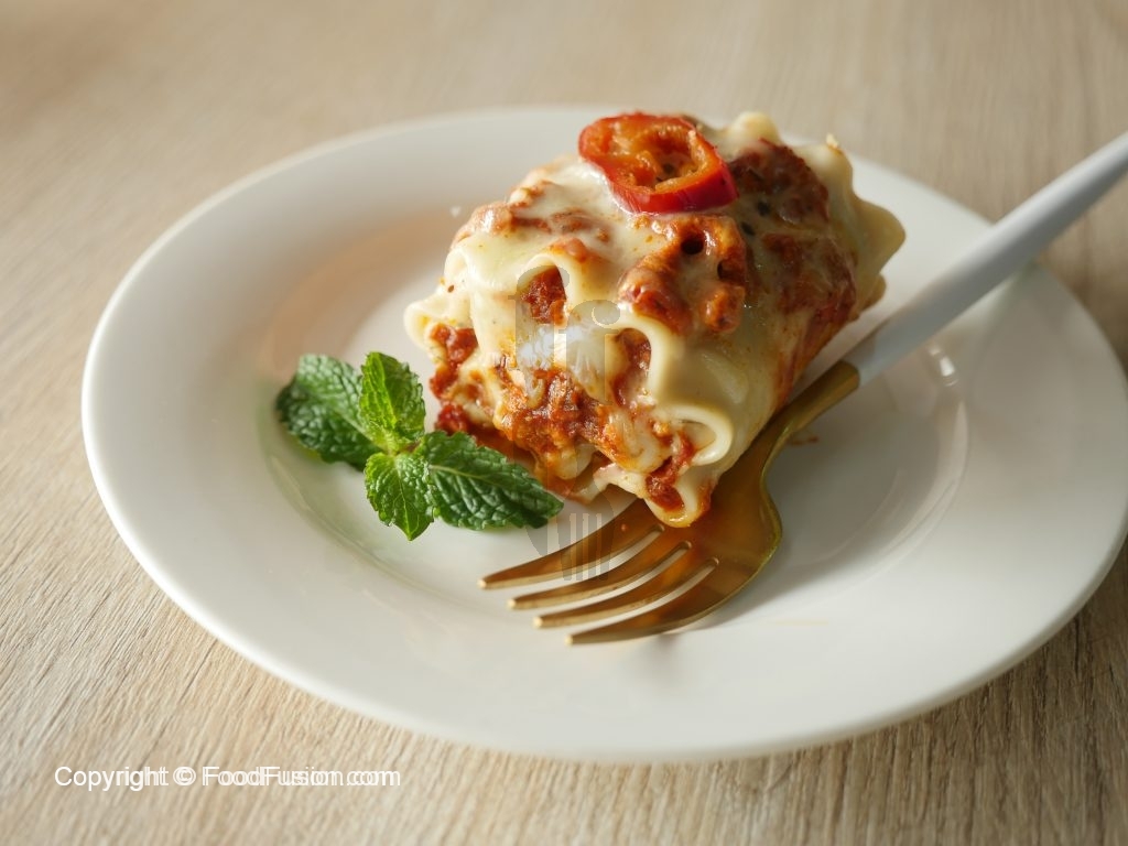 Lasagna sheets per white sauce aur red sauce with mince dal ker pheela lein aur roll ker lein.