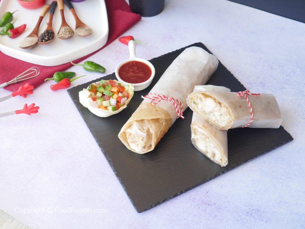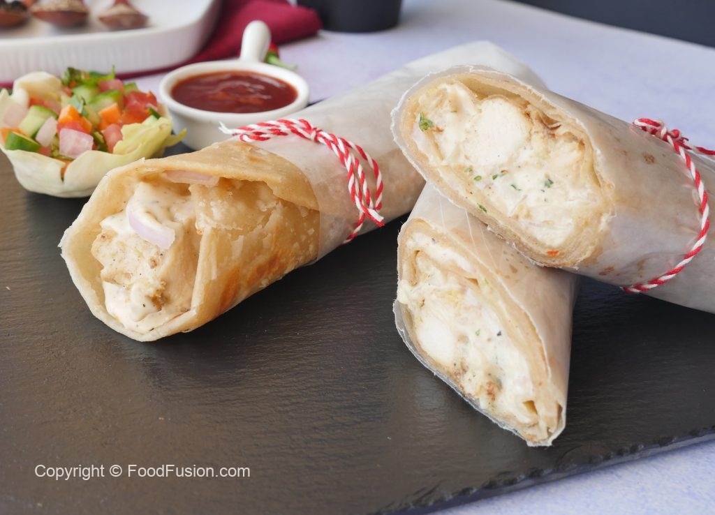 On paratha,add prepared creamy white sauce,chicken malai boti,onion,creamy white sauce, fold to make a roll,wrap in butter paper & serve! (Makes 4).