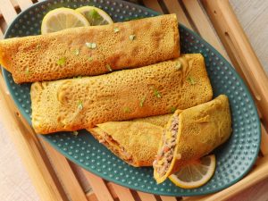 -Add prepared chicken filling in the center of the circle dough, add mix cheese, green chilli, fresh coriander.