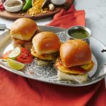 Mini bun kababs ko chutney & pyaz rings ka saath serve karein.