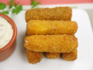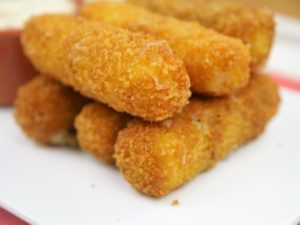 Cut the mozzarella cheese into ½ inch thick sticks.