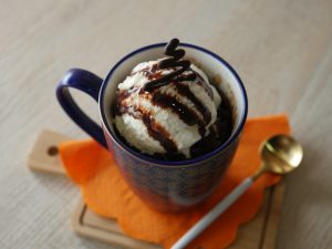 In mug,add egg,butter,vanilla essence,caster sugar,all-purpose flour,baking powder,salt,horlicks chocolate powder and mix well until smooth.