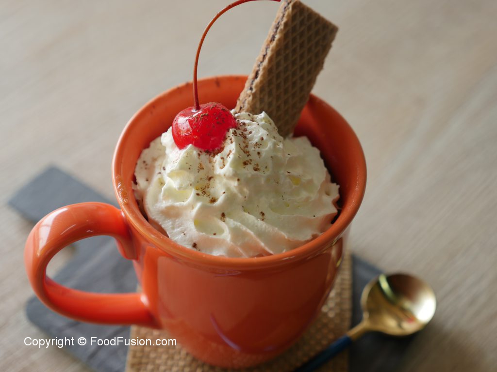 Whipped cream,cherry aur wafer sa garnish ker ka serve karein.