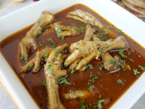 -Fire roast chicken feet on medium flame until its charred from all sides.