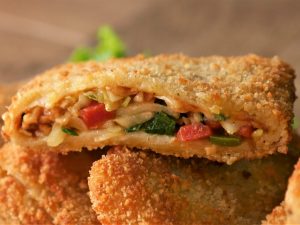 Chicken & egg mixture dal ker tamam sides ko fold ker lein (makes 8).