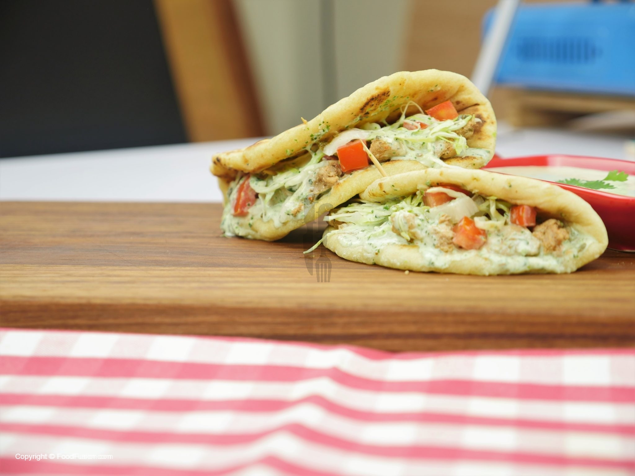 Take naam,add chicken,onion,tomato,cabbage and drizzle chutney.