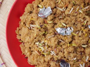 -Garnish with almonds,pistachios,edible silver leaf & serve!