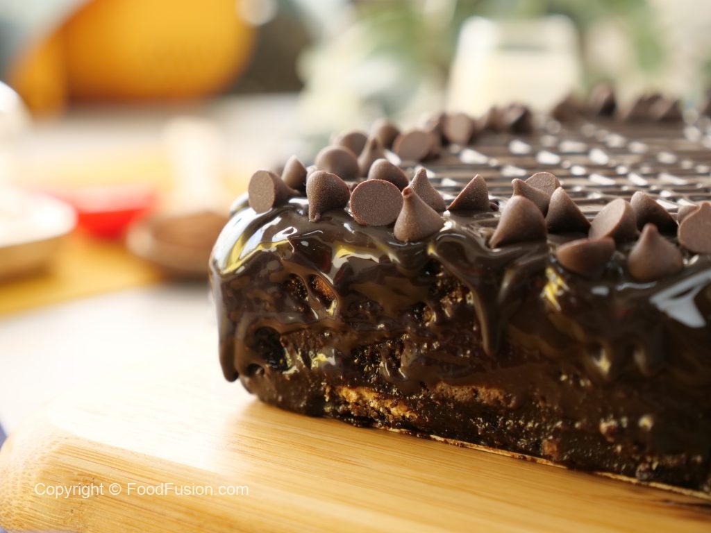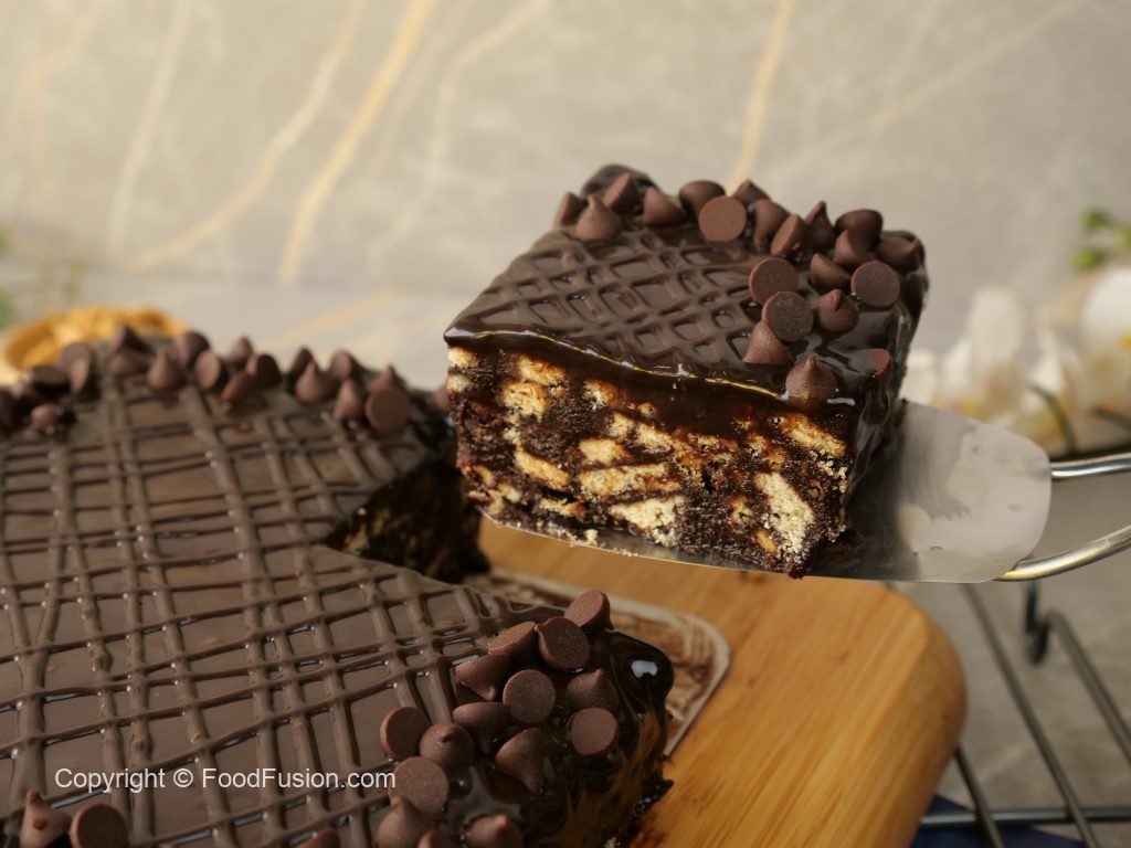 A treat for chocoholics, Easy no bake chocolate Biscuit cake. Make this divine cake for nay occasion in no time with Nurpur butter. #HappyCookingToYou #FoodFusion #Nurpur #NurpurButter