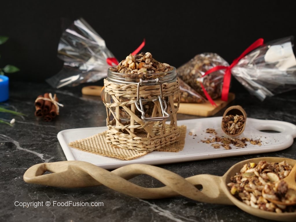 -Let it cool completely & mix well (yields: 1000g of granola).
