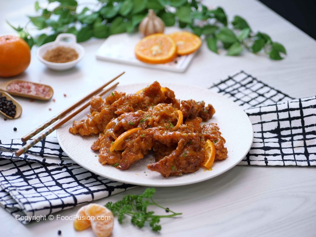 -In a wok,add lemon & orange juice (1 Cup),brown sugar,remaining spice mix (1 tbs),lemon zest (1/4 tsp),orange zest (1 tsp),cornflour & whisk well.