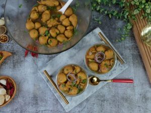 -In a wok,heat cooking oil and fry phulki (pour with the help of spoon) on medium flame until golden brown & crispy.