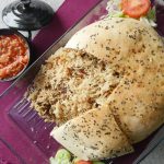 Fried pyaz dal ker dough ka edges ko fold ker ka oil sa grease ker lein aur baking tray (10x10 inches) per flip ker lein.