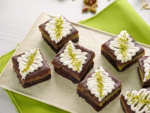 -Cut into pieces & decorate with white chocolate ganache,pistachios & serve!