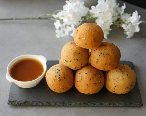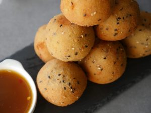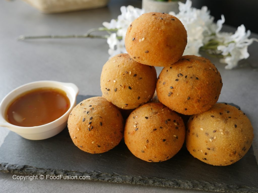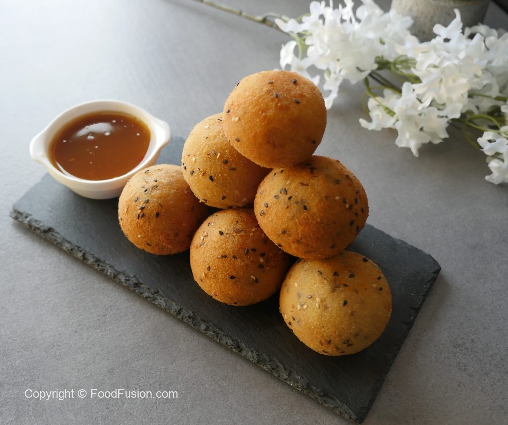 Now dip ball in all-purpose flour paste and then coat in breadcrumb (makes 10-12).