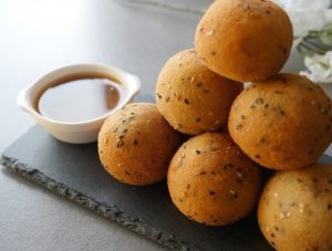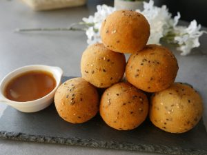 Grease hands with cooking oil,take a mixture and make a ball.