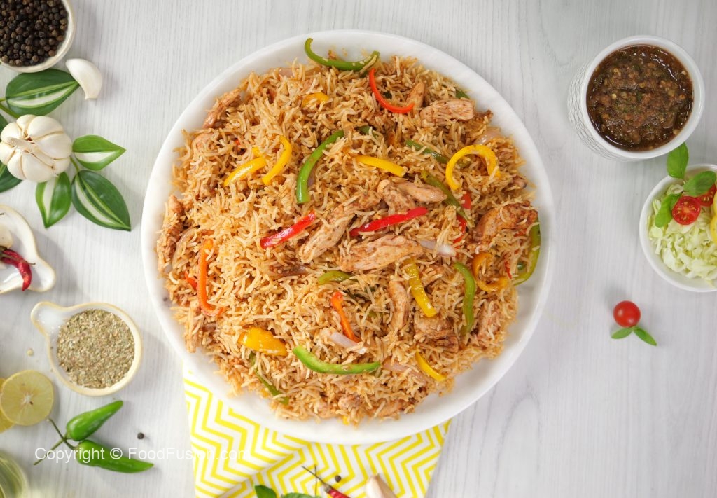 Restaurant-style Chicken Fajita Rice, with juicy chicken, vibrant peppers, and aromatic rice served with a delicious roasted tomato sauce; it’s a complete meal that’s bursting with flavors and aroma. #FalakRice #happycookingtoyou #FoodFusion #pakistanicooking #araywahh #digitalammi
