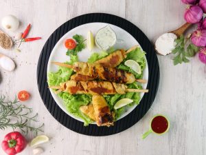 -Grease hand with oil,take a small quantity of mixture (100g) & skew on wooden skewers.