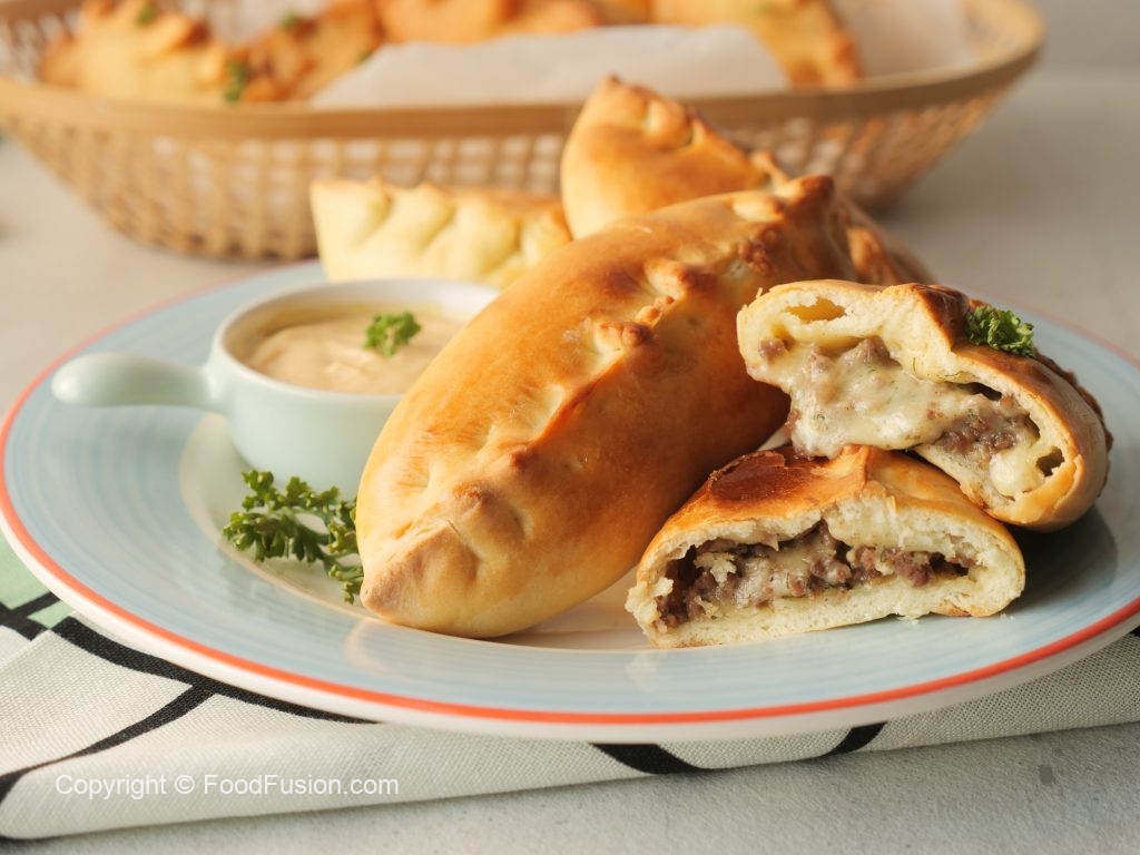 A fantastic Russian Pirozkhi with meat & Cheese filling. Pirozkhi is like a filled bread which is pinch sealed. This recipe has methods to bake or deep fry. #HappyCookingToYou #FoodFusion #PakolaFullCreamMilk
