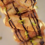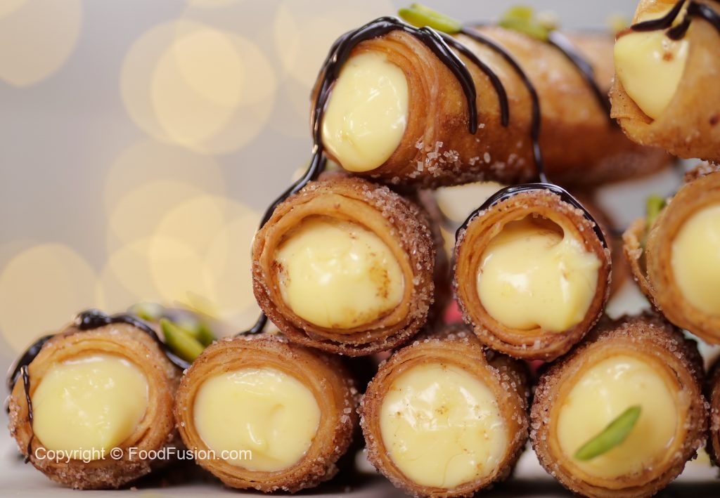 -Pipe out prepared creamy custard in the cinnamon sugar-coated samosa rolls.