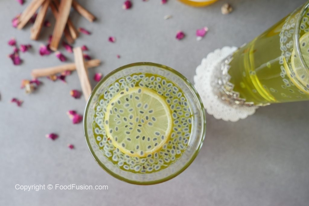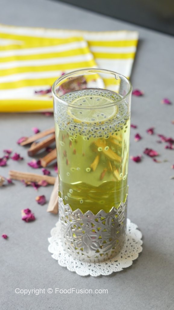 Serving glass mein ice cubes aur tayyar sandal ka sharbat dal ker serve karein.