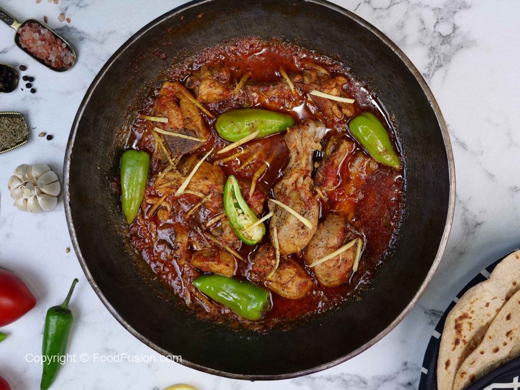 -Karahi mein cooking oil,chicken aur pink salt dal dein.
