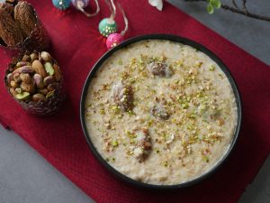 Ab roasted sawaiyan dal ker ache tarhan mix karein aur halki ancch per doodh adha reh janay tak paka lein (approx. 15-20 minutes) aur bech bech mein chamcha chalatay rahein.