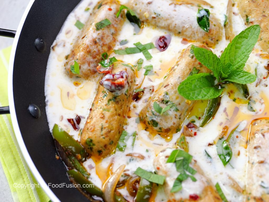-Grease a plastic sheet with cooking oil,place 50g (2 tbs) of mixture,fold plastic sheet & slide a little to make a cylindrical kabab (makes 16-18).