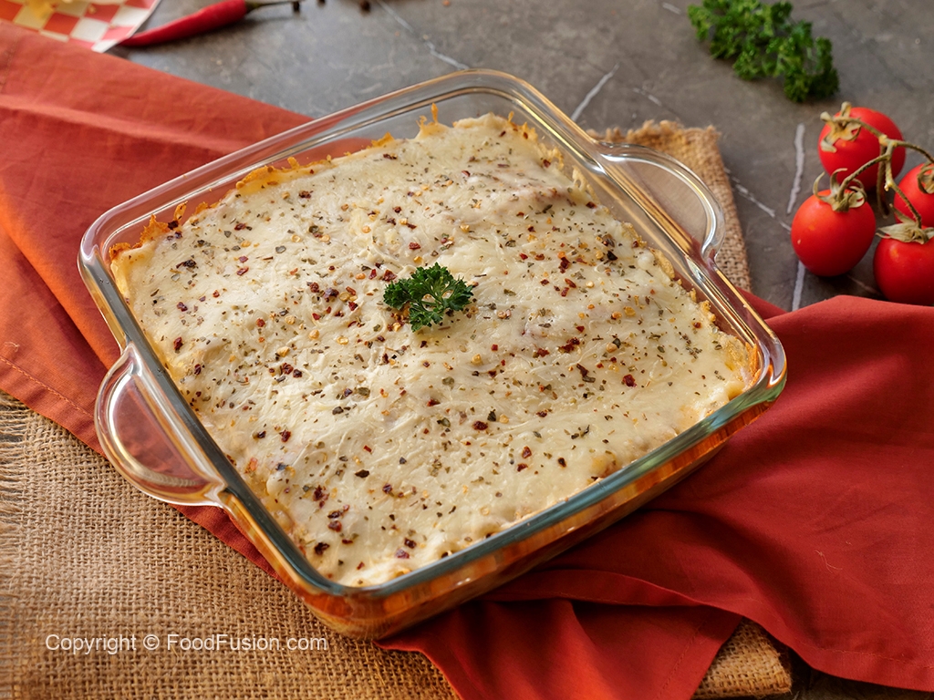 • Lasagna sheets as required (boiled until 3/4th done)