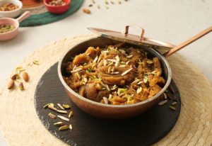 Add pistachios, raisins, almonds, mix well & cook for 1-2 minutes then set aside.