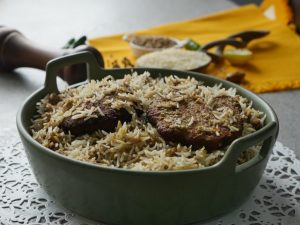 -In a spice grinder add coriander, black peppercorn, zeera, black cardamom, nutmeg, mace, cinnamon, desiccated coconut & grind well.