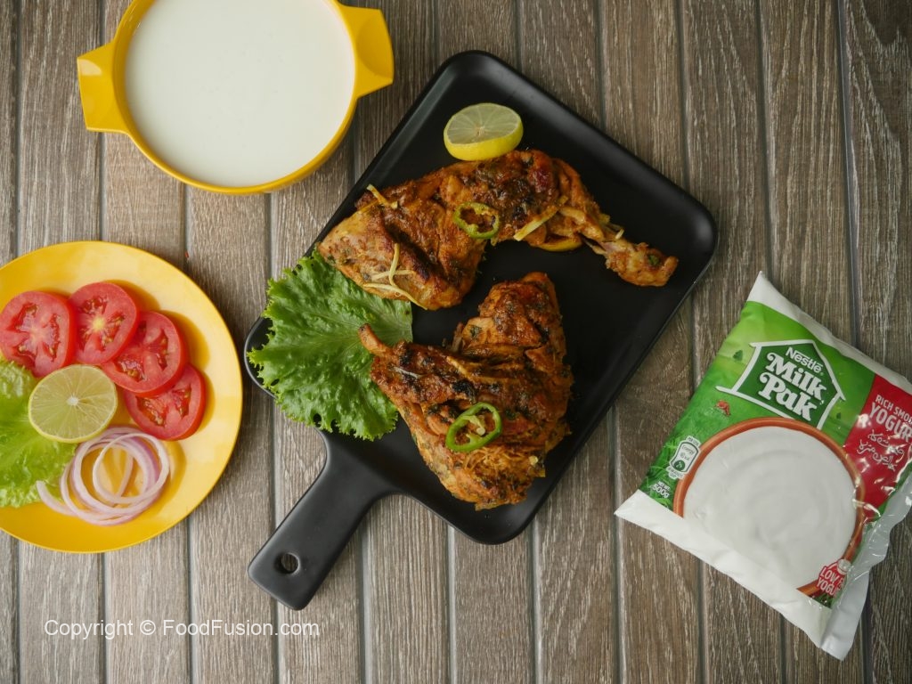 Lemon aur spiced dahi dal dein aur dhak ker halki ancch per 8-10 minutes kliya paka lein phir uncovered 5 minutes kliya paka lein,turn ker ka chicken pieces ko slightly cut ker lein.