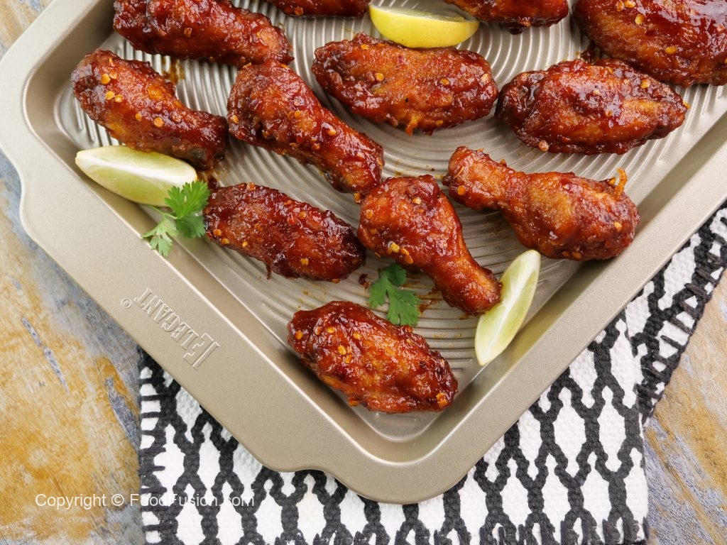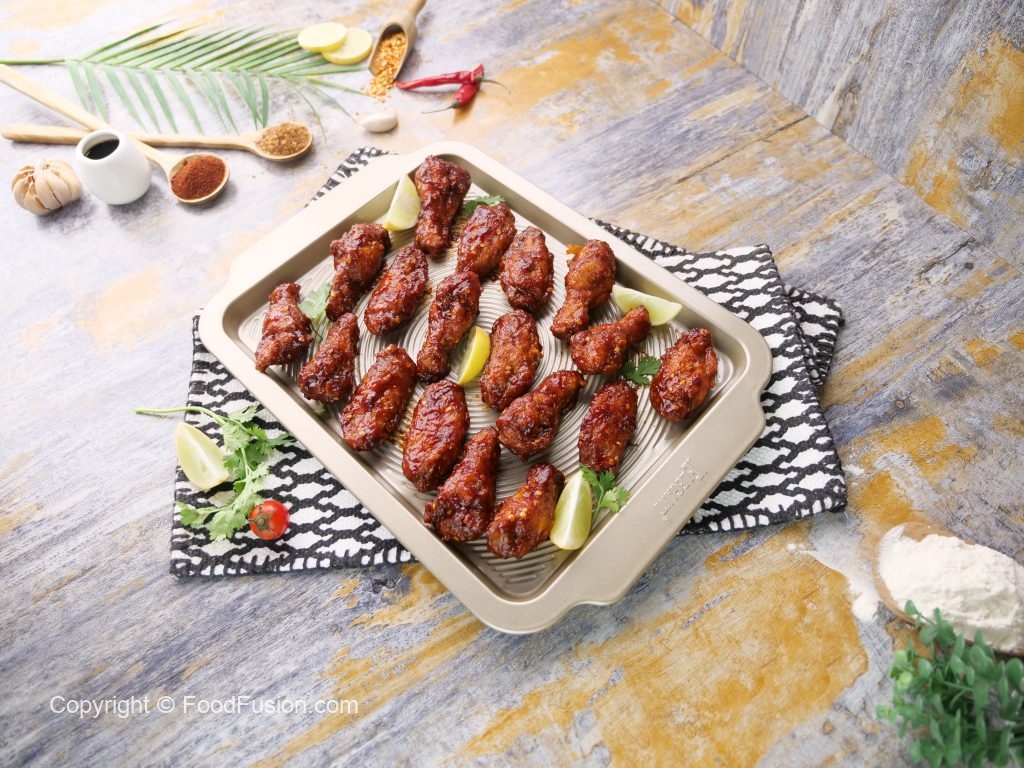 -In a wok,heat cooking oil & deep fry chicken wings on medium low flame until golden brown & crispy.