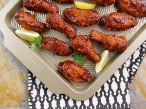 -Bowl mein chicken wings,lal mirch powder,namak,paprika powder aur adrak lehsan powder dal ker ache tarhan mix ker lein aur dhak ker 15 minute kliya marinate ker lein.