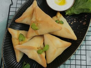 -Dough ka two edges ko ek saath seal karein aur pinch ker lein.Baqi do sides ko bhi seal ker ka pinch ker lein (makes 12-14).