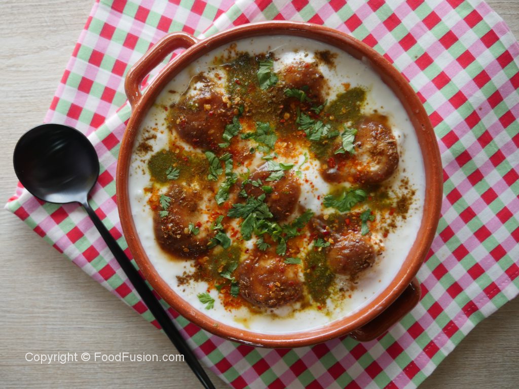 In serving dish,add steam dumplings,yogurt,date tamarind chutney,green chutney and sprinkle red chili crushed,cumin seeds,salt,fresh coriander & serve.