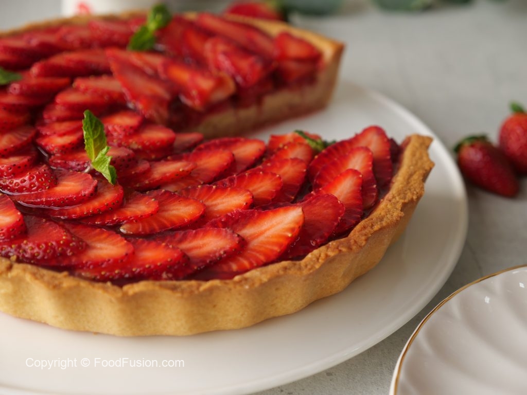 -Tart base per tayyar custard dal ker pheela lein aur 10 minutes kliya refrigerate ker lein.