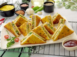 -Spread prepared chicken filling on one side, add mozzarella cheese & flip the other side of paratha over it. Press gently & cook from both sides until golden & crispy (makes 10).