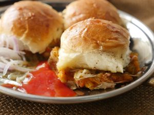 On bun,add potato & chickpea mixture,green chutney,onion,chaat masala and top with another bun (makes 8).